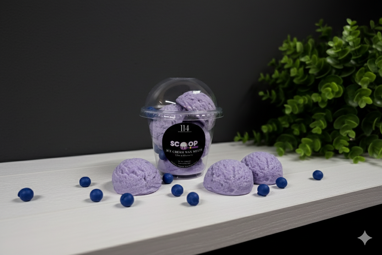 Dive into dessert dreams with our Lilac & Blueberry Ice Cream Wax Melts—a whimsical scent experience that's almost too pretty to melt! Four stunningly lifelike scoops marry the delicate floral elegance of lilac with bright, tart blueberry sweetness. Dotted with real blueberry pieces that release authentic fruity aroma as they warm, these melts bring playful indulgence to every corner of your home. It's the perfect way to satisfy your craving for cozy, gourmand fragrance—no spoon required!