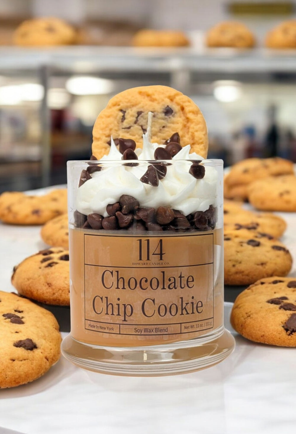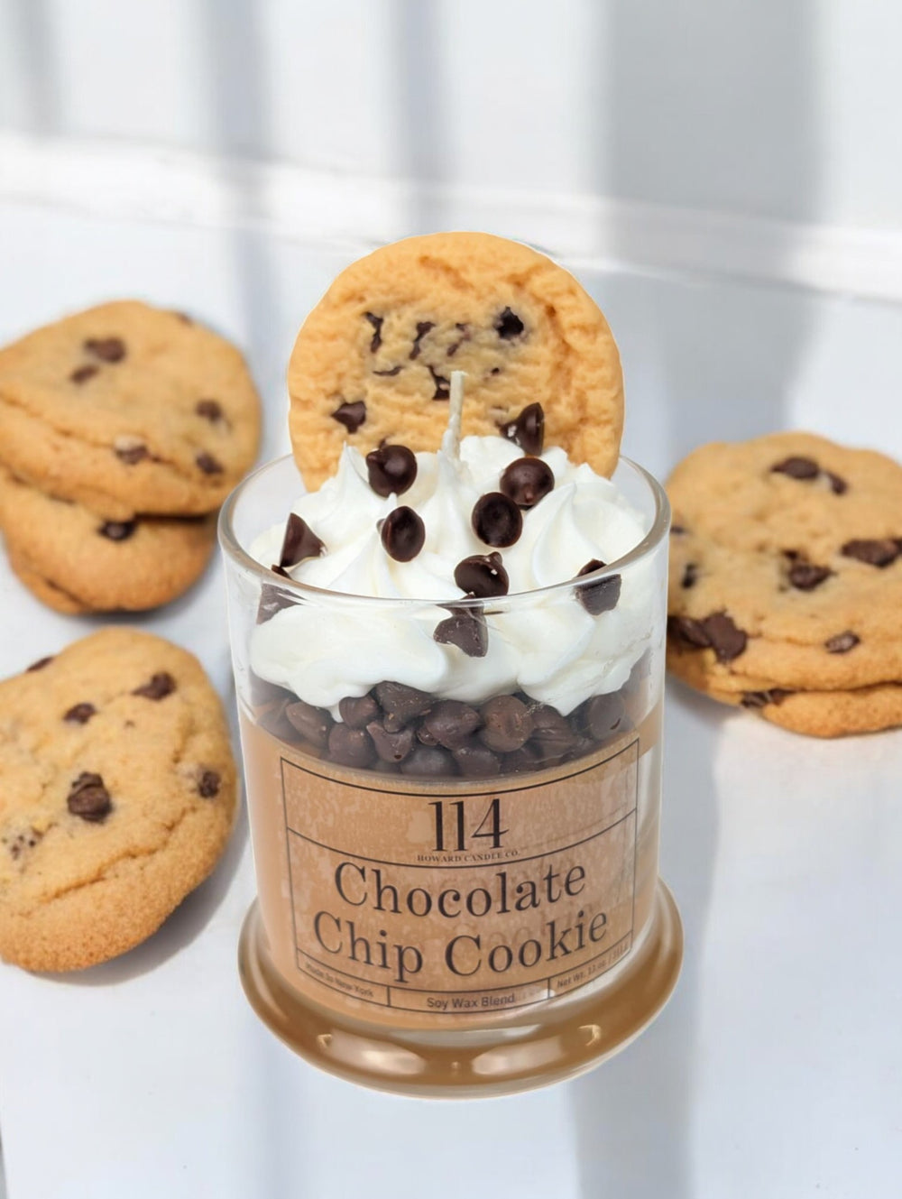 Satisfy your cravings without the calories! This hand crafted candle is a deliciously indulgent treat for your senses. With the rich scent of freshly baked chocolate chip cookies, your home will feel warm and inviting. (But don't try to take a bite - it's definitely not edible!)